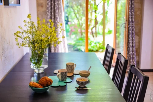 Le Magnolia du bonheur sera le centre de votre séjour pour vos repas en profitant de sa grande terrasse donnant sur la vue.